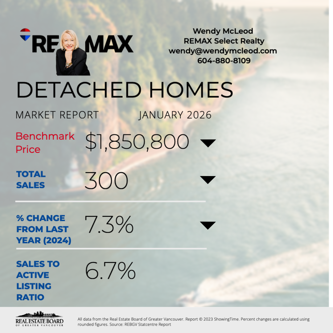Sales of detached homes in January 2026 reached 300, a 21.1 per cent decrease from the 380 detached sales recorded in January 2025. The benchmark price for a detached home is $1,850,800. This represents a 7.3 per cent decrease from January 2025 and a 1.5 per cent decrease compared to December 2025.
